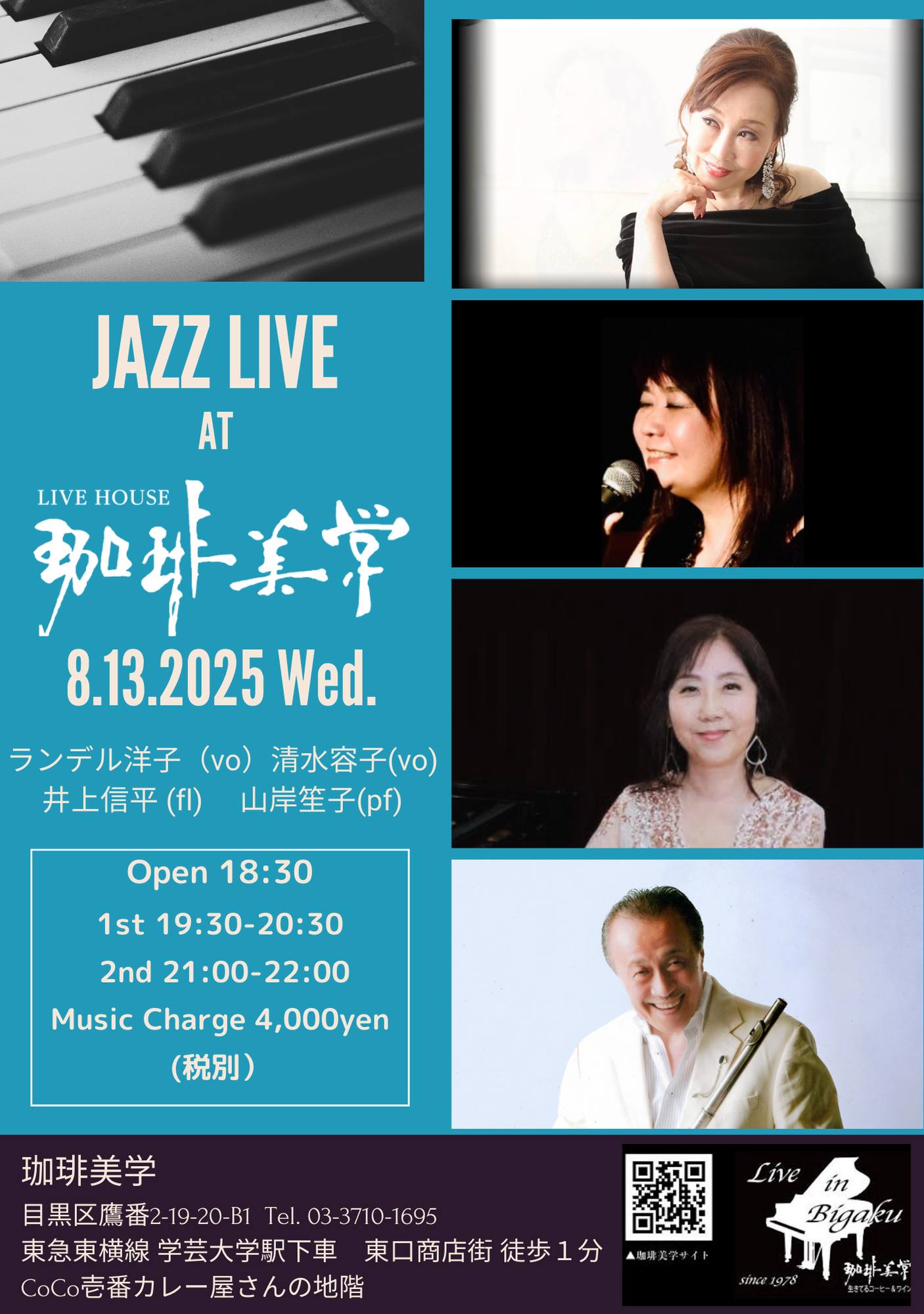 Pf 中島薫 B南山拓朗 D河村亮 Vo青山祐子 経堂Crazy Love 03-3425-9041 |